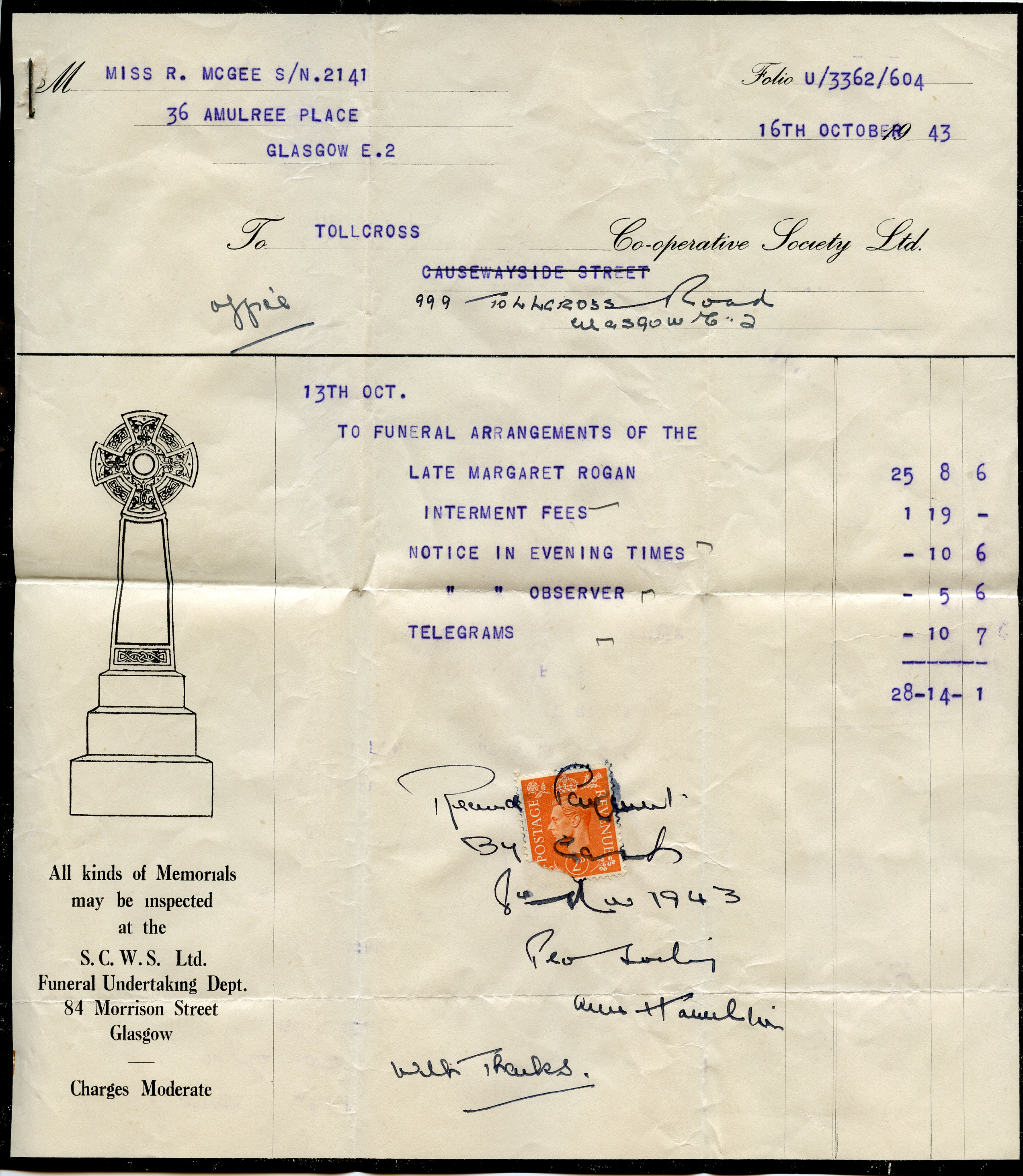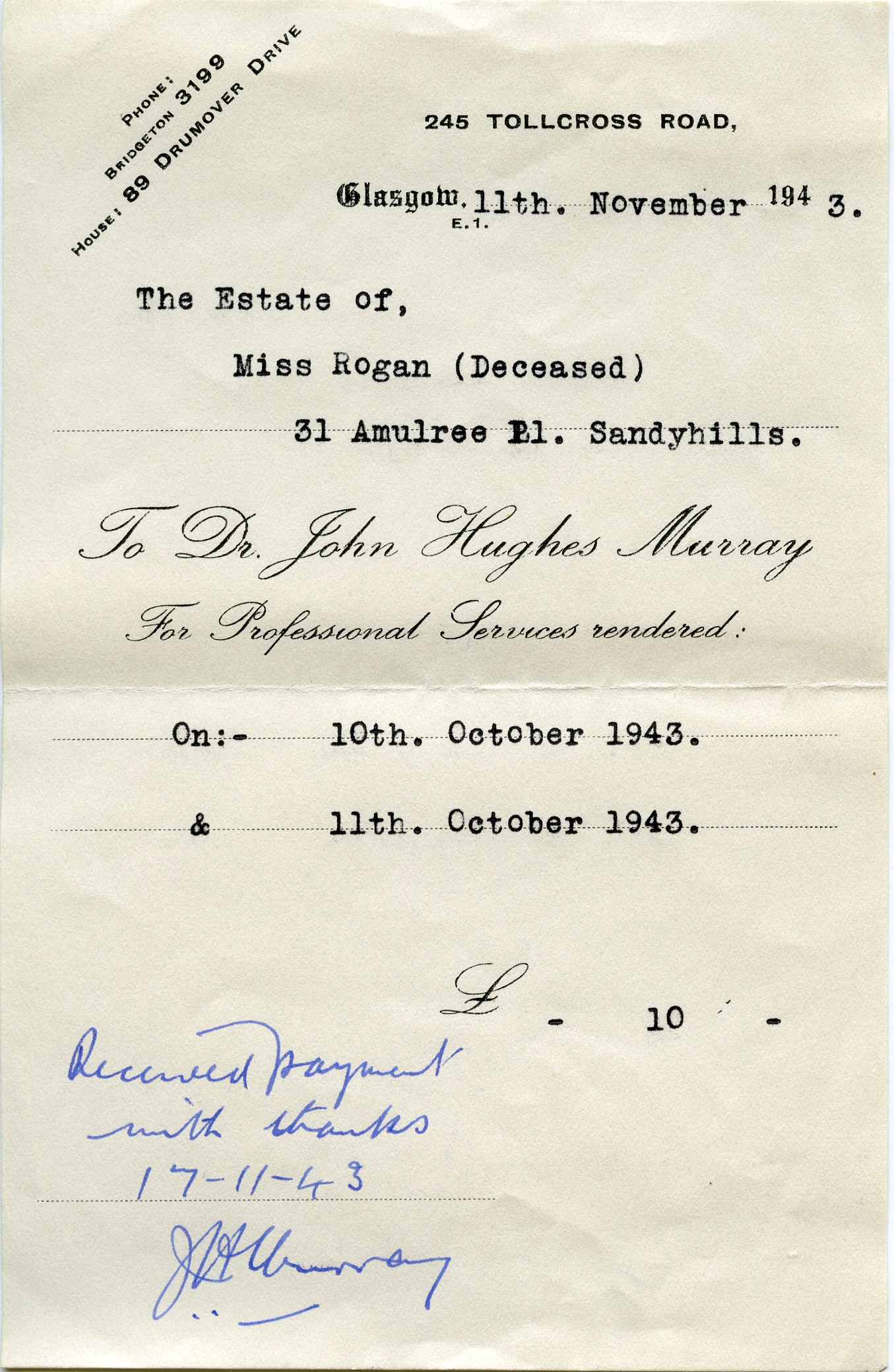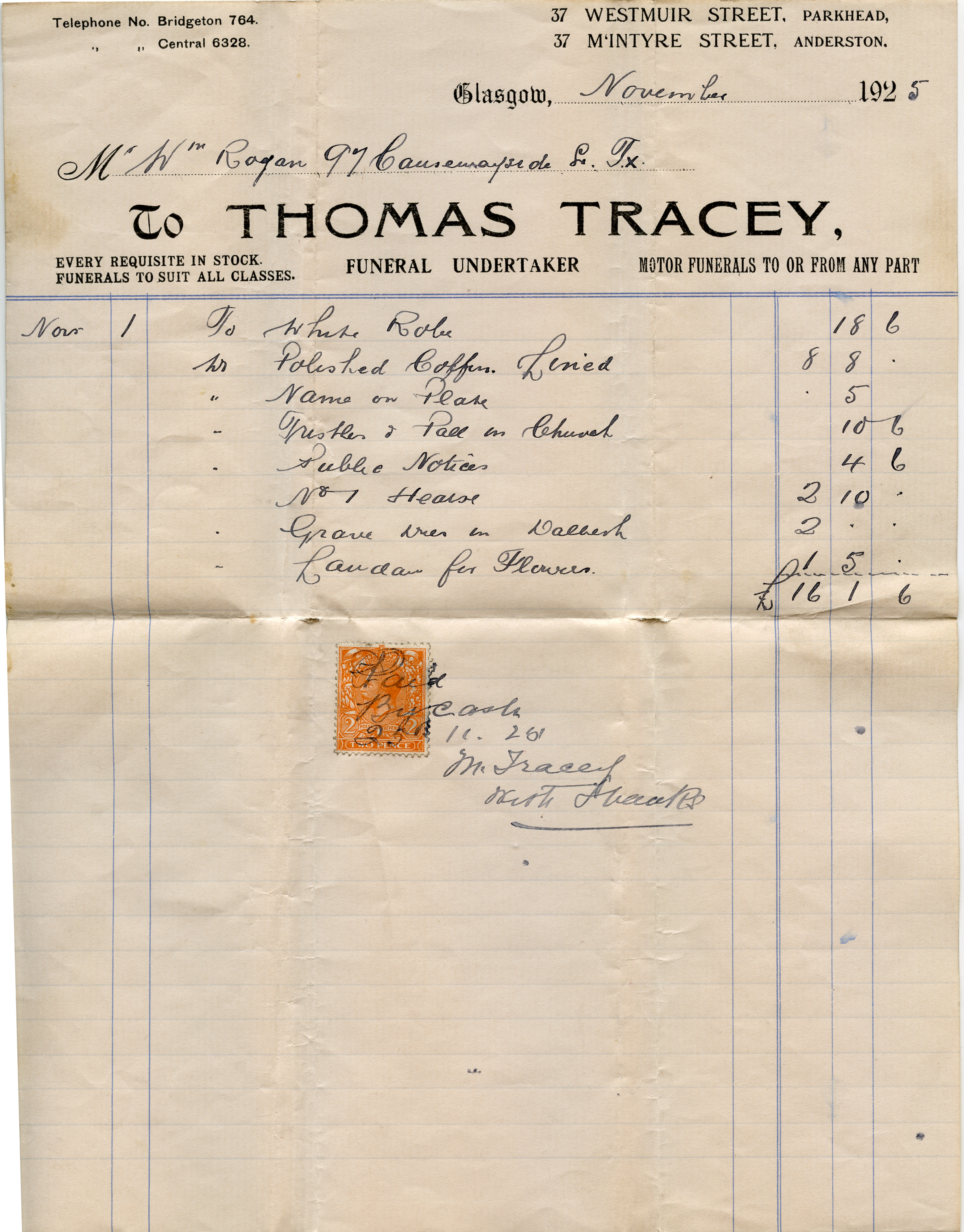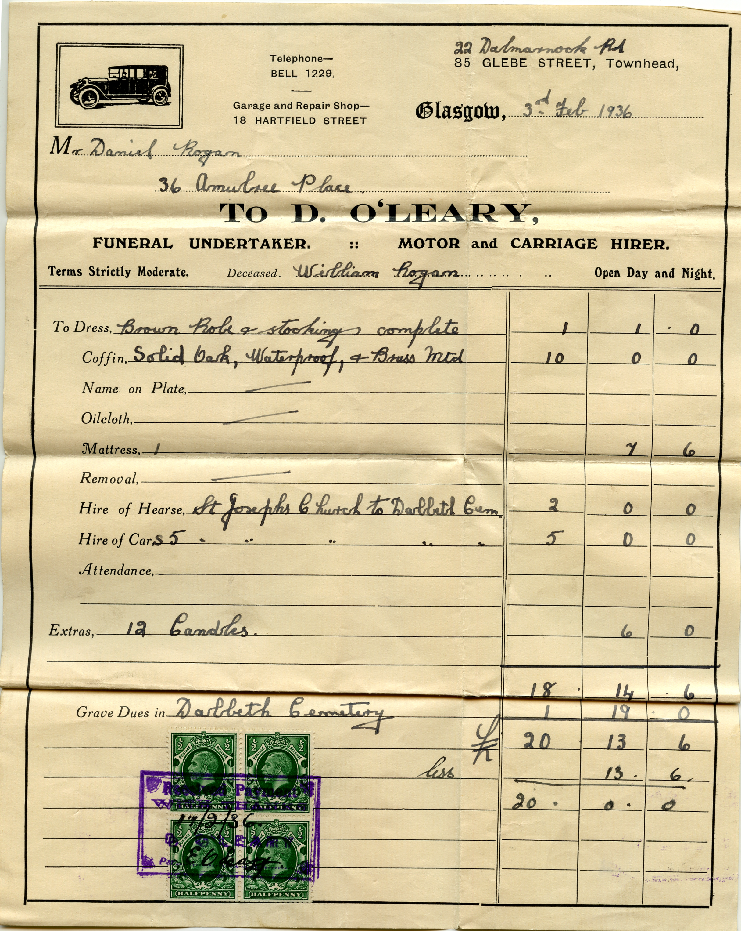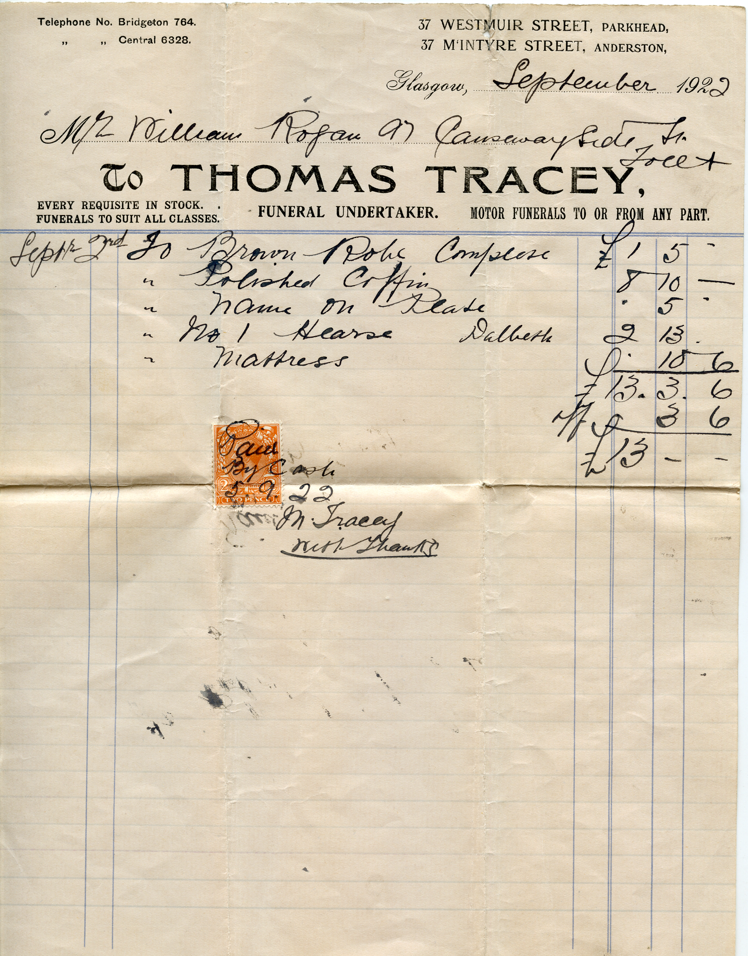 | The receipt for the burial | And the doctor's bill. (Before the NHS!) |