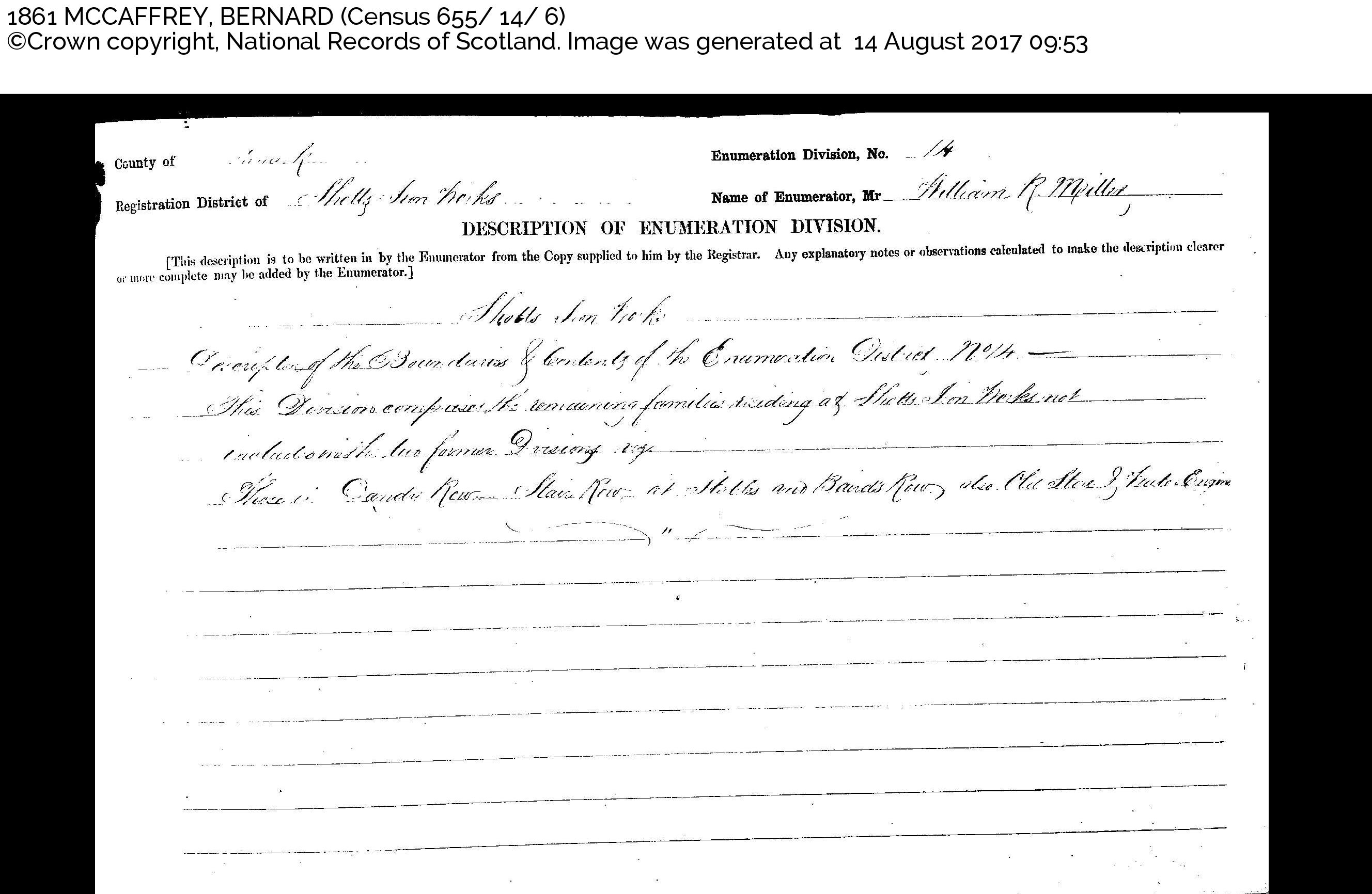 Division comprises the remaining families residing at Shotts Iron Works not included with the former Division viz