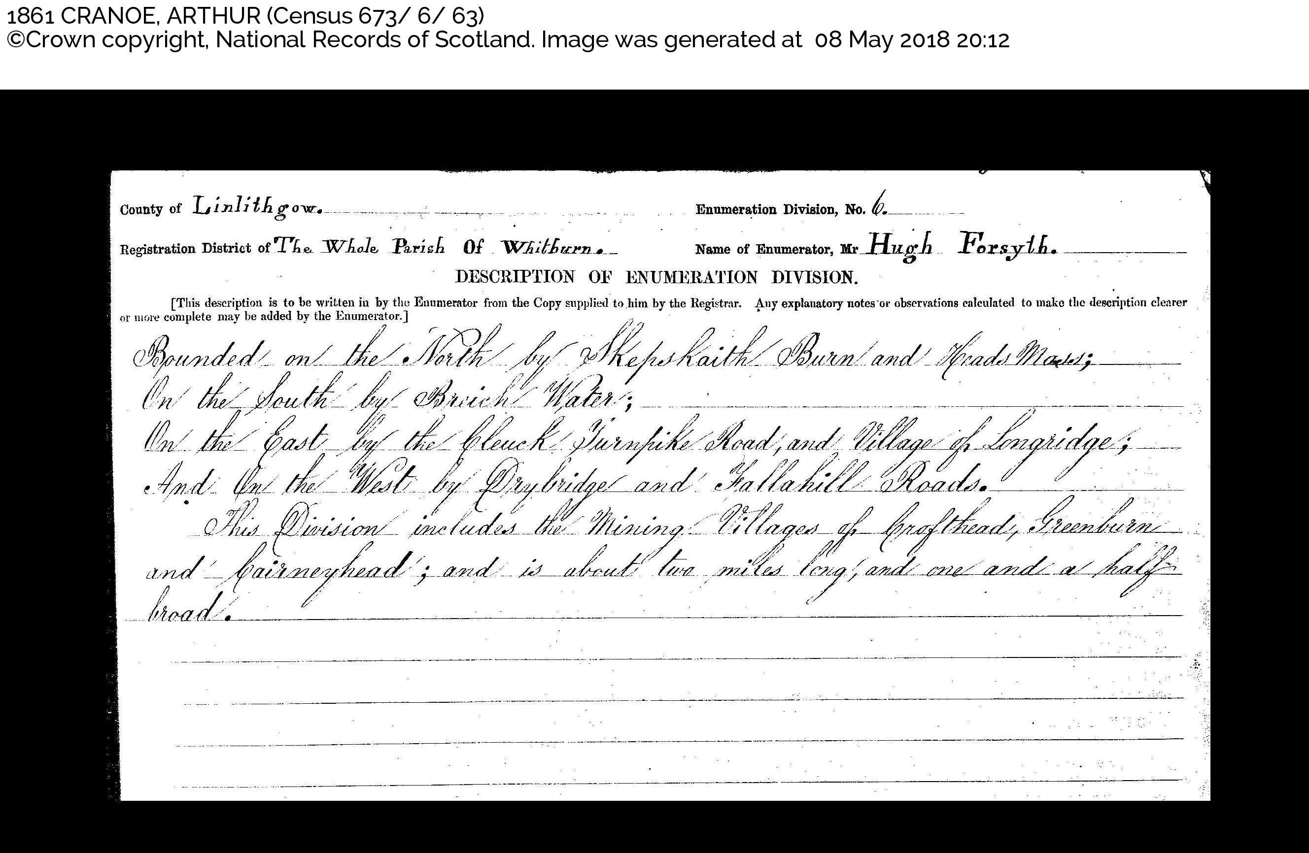 This Division includes the Mining Villages of Crofthead, Greenburn and Cairneyhead ; and is about 2 miles long and one and a half broad.
