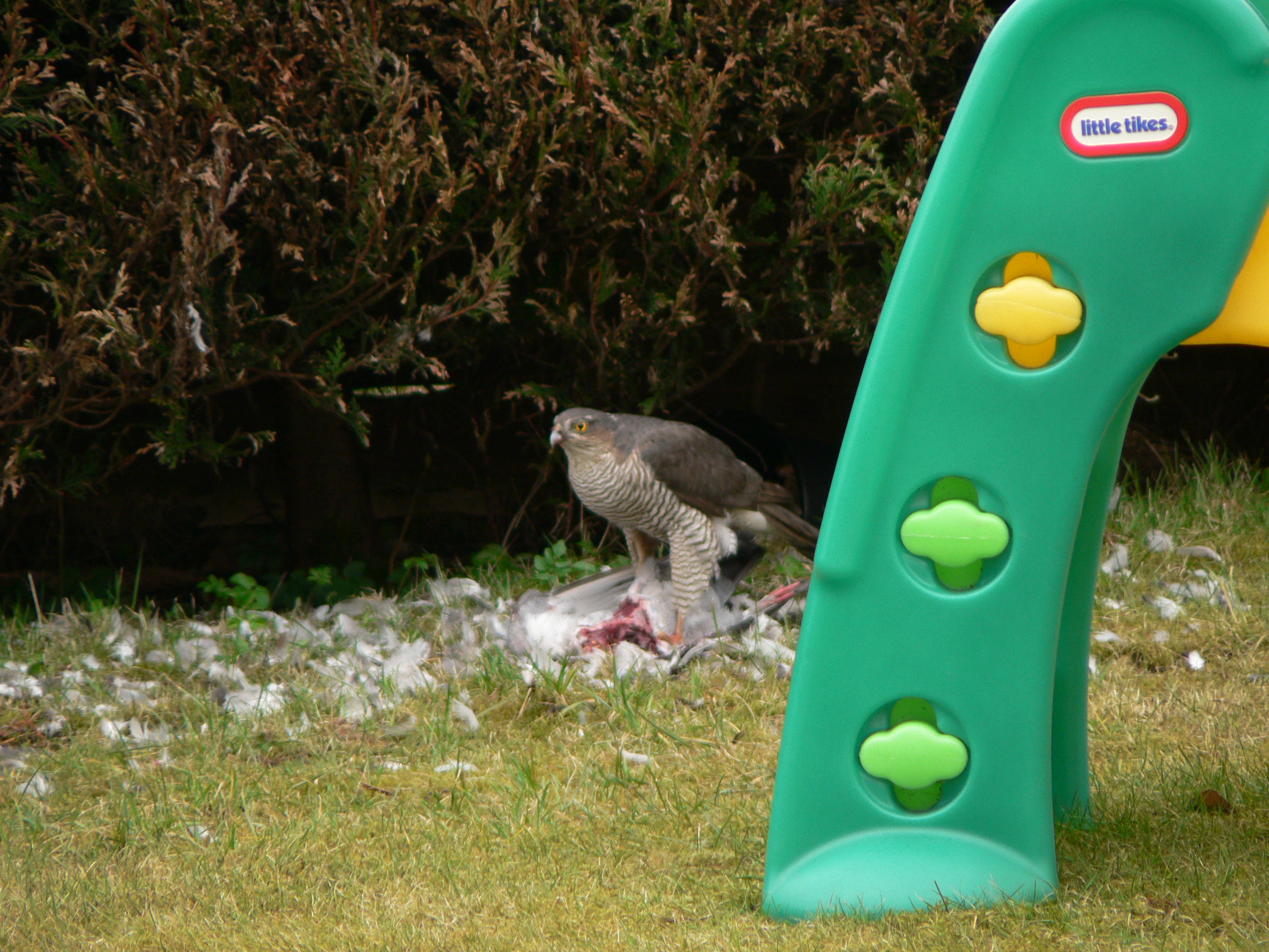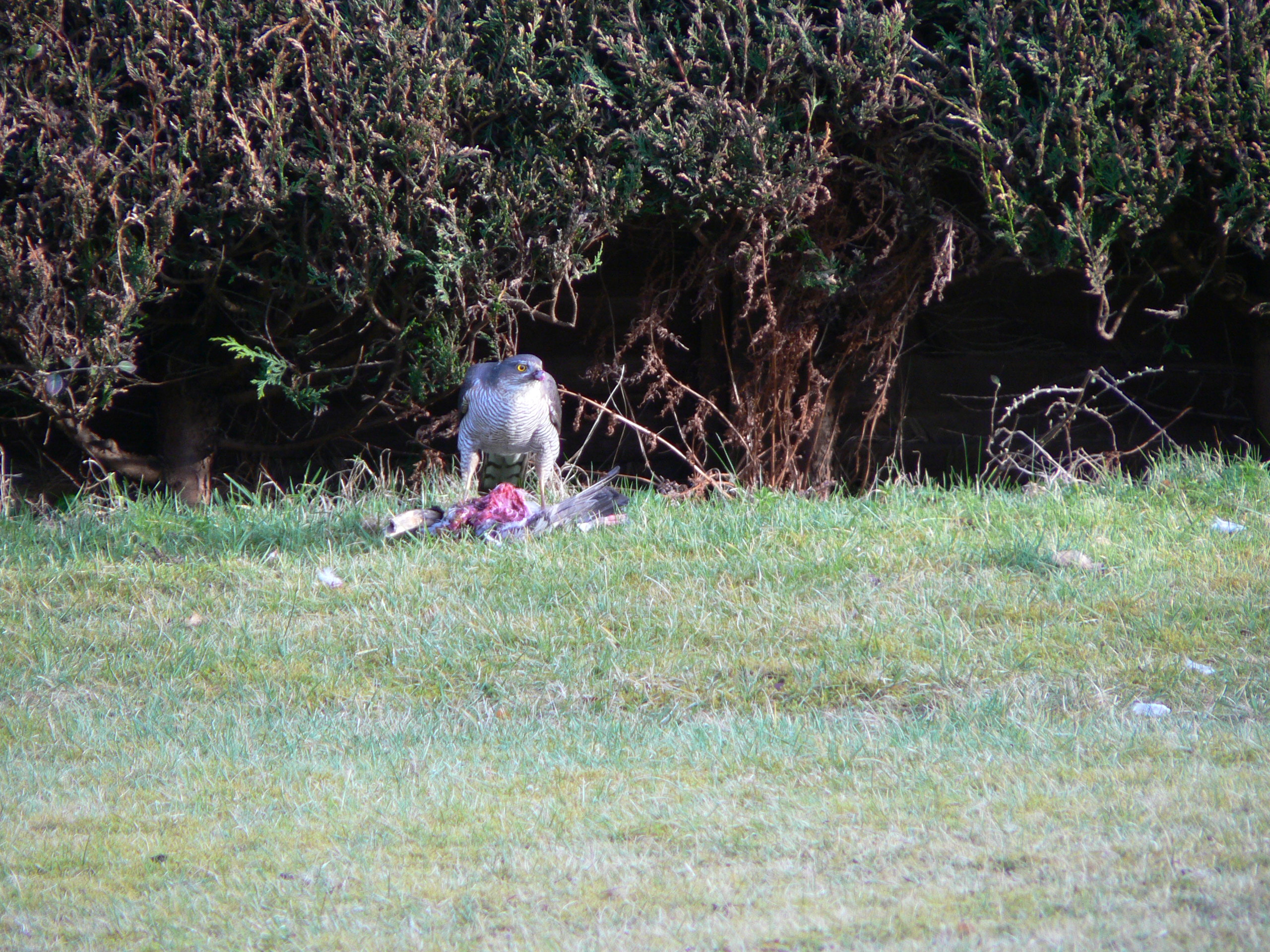 A seagull in the garden, prepared to defend it's dinner on Wednesday, 11 December. I can't make out what it is defending but it doesn't look very appetising. |