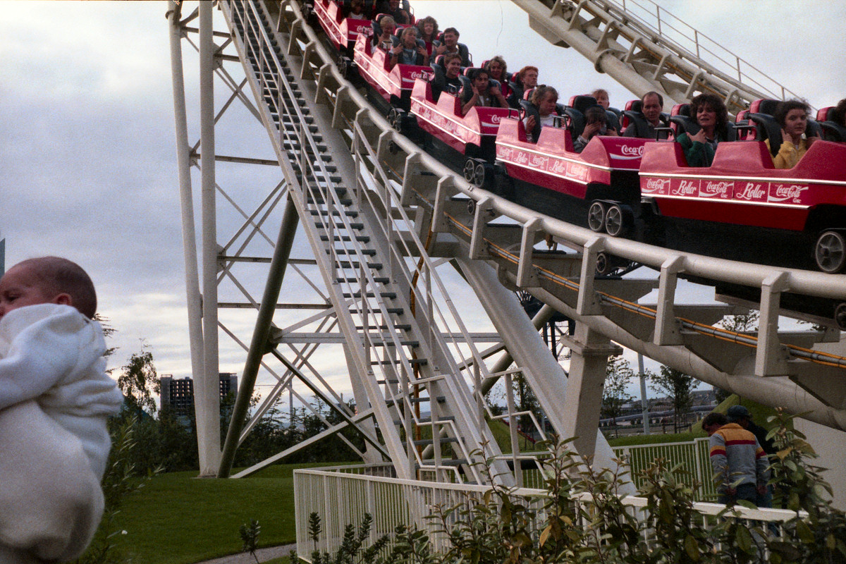 23. “The Coca Cola coaster - coming down. Karen & Fiona haven't arrived yet.” |