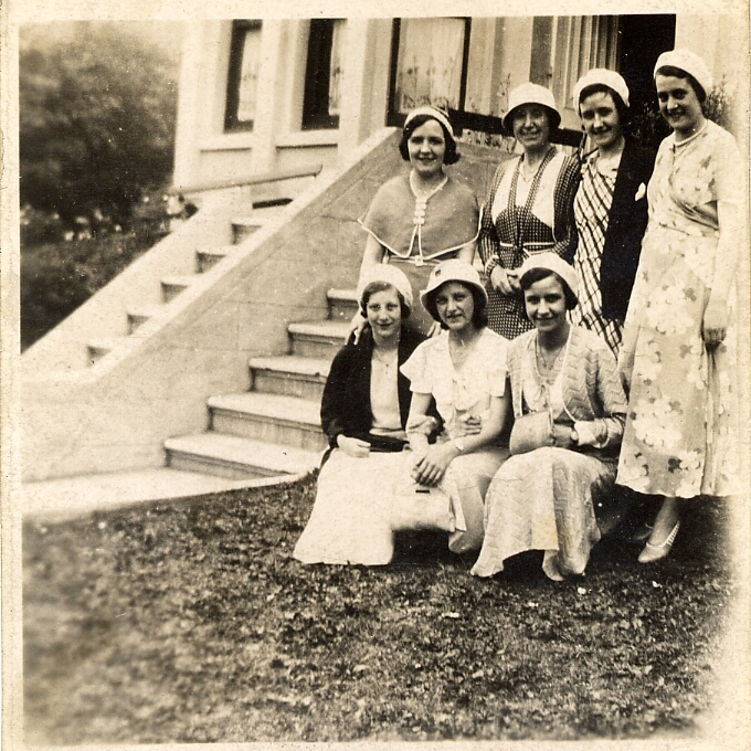 Evans, Winnie ?Shorey?, Ena Gillatt, Kathleen Almond, Millie Hibbert, Phyllis Hadcroft, Violet Parker & Hilda Shaw" |