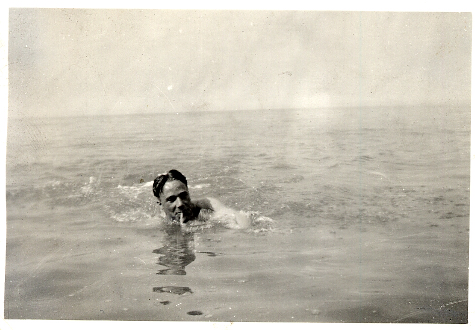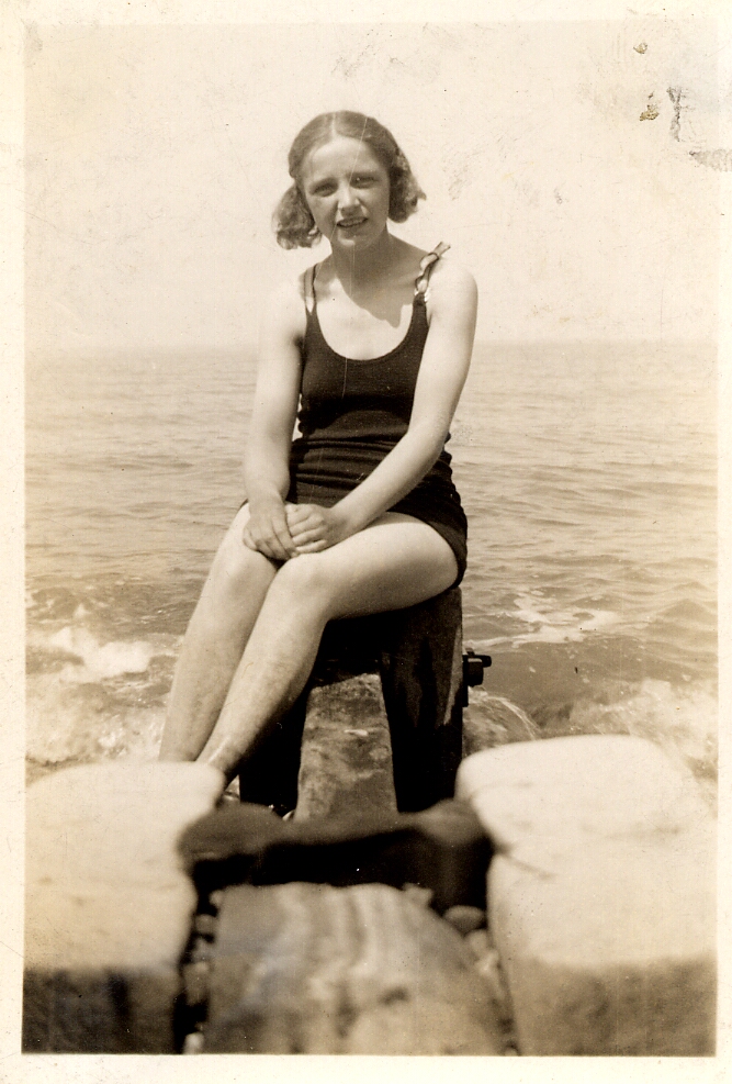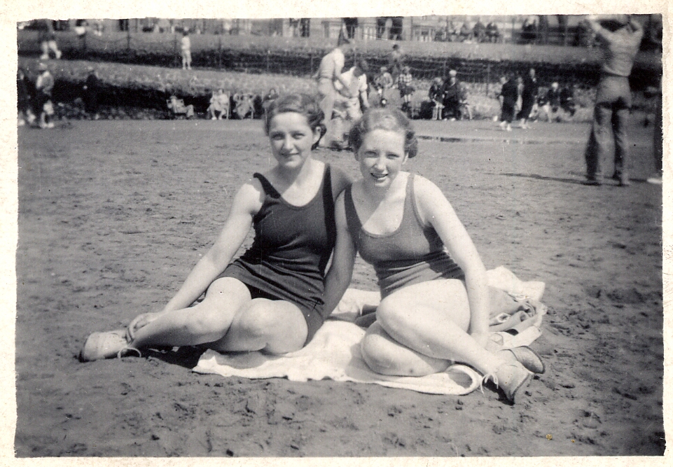 I'm not sure the swimmers were at Old Colwyn but the snaps look to have come from the same film. I doubt that next three are from the same film, they are marked "1937 or 1938", but the swimsuit shoulder straps match and they continue the aquatic theme. (Yes, I know, left and centre are mirror images of the same shot.)