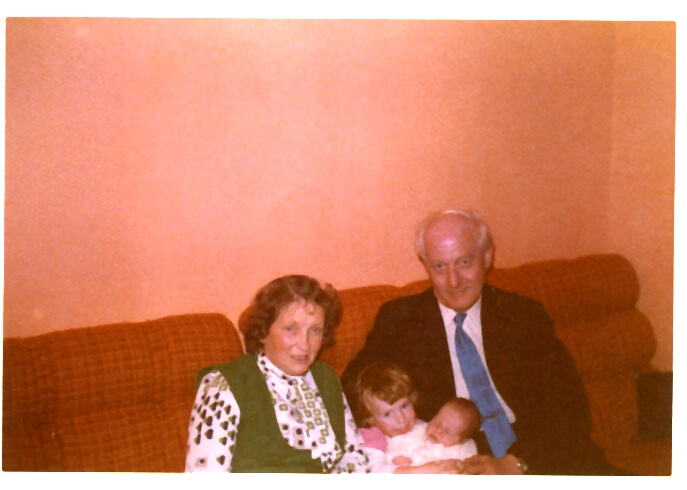 | "Christmas 1974" Rosa & Willie with Michelle (nearly 3) & Gordon (7 weeks) at Rugeley. |