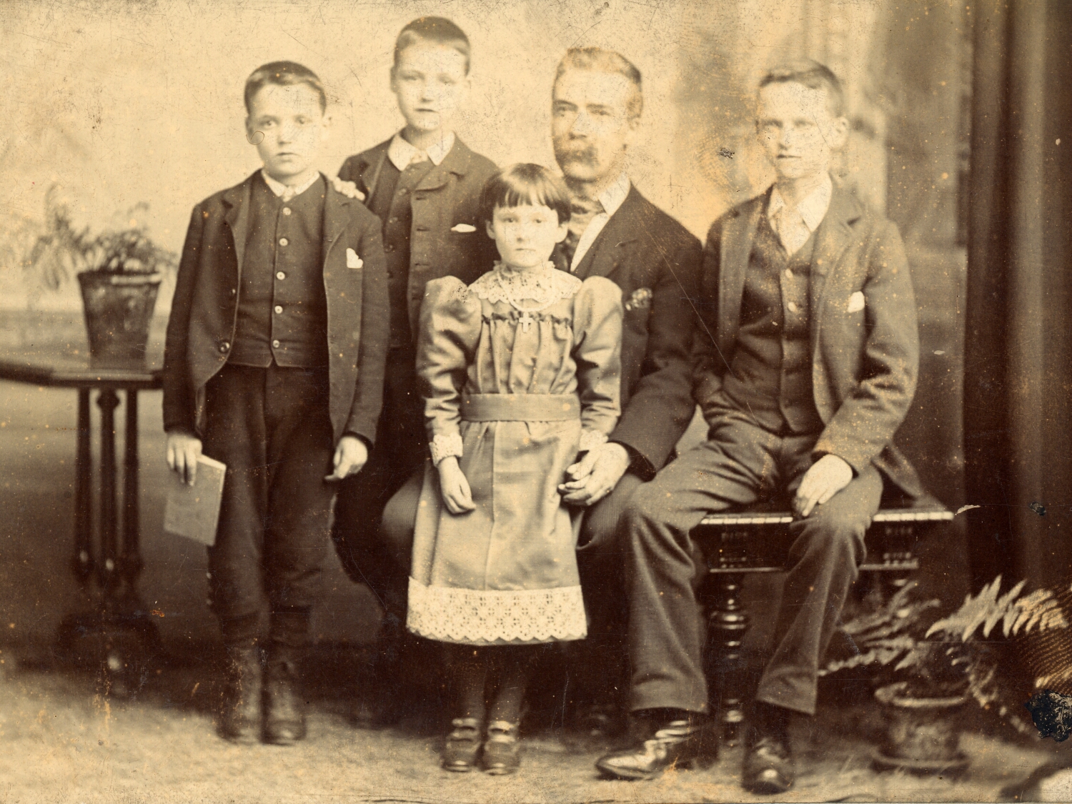 Thomas McGee (born 1846 in Shettleston, now in Glasgow, died 1916 in Ardwick, Manchester) with his children (boys, from the left)