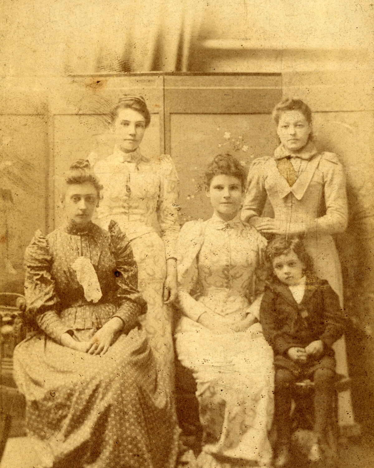 Marie (seated on the right) born 1875 in Manau, India (while her father was serving in the 68th Regiment of Foot), died in 1918 in the Royal Infirmary, Manchester, flanked by (standing)