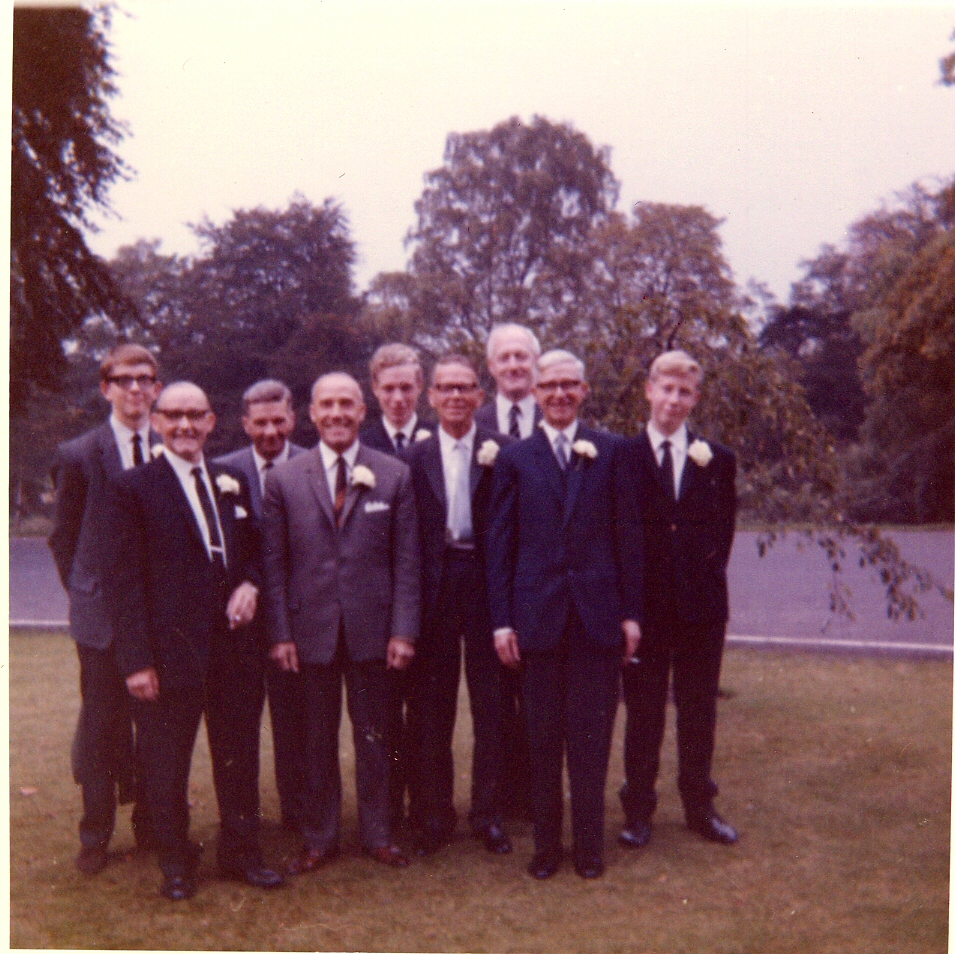 (=GHS075 "Sept 17th 1966 - Sylvia & John's wedding - The men of the family") Dave Tom John Willie Paul Bill George Jack Ritchie |