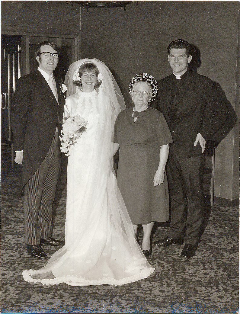 | July 3 1971 "Catherine Maclauchlan & Robert Corrins, Auntie Jeanie & Fr John Creanor" |