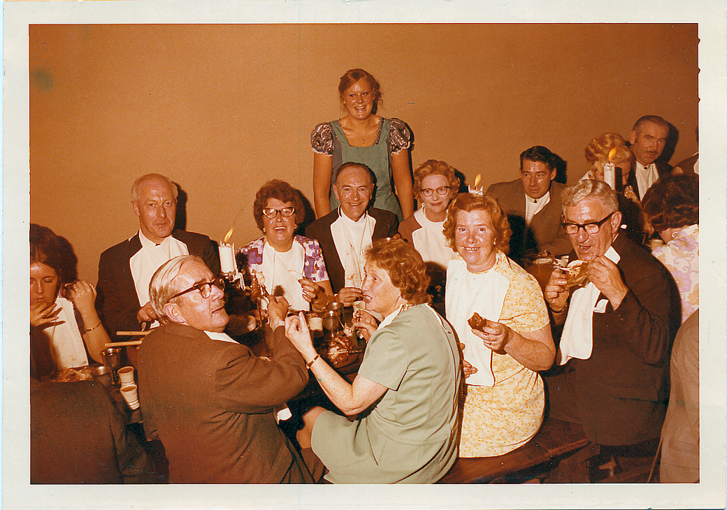 | The Medieval Clan Reynolds with serving wench. Willie, Nina, George, Lena; Charlie, Queenie, Margaret & Gerry |