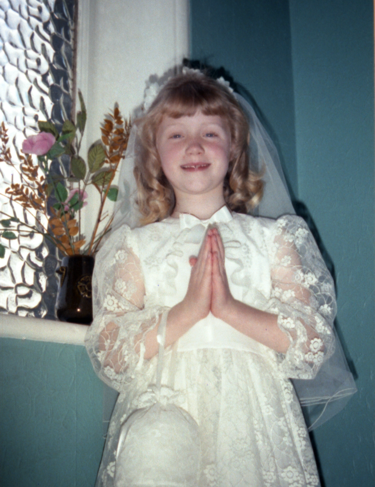 | 0000. Karen Clare at the font with her baptismal candle (WRR654) |