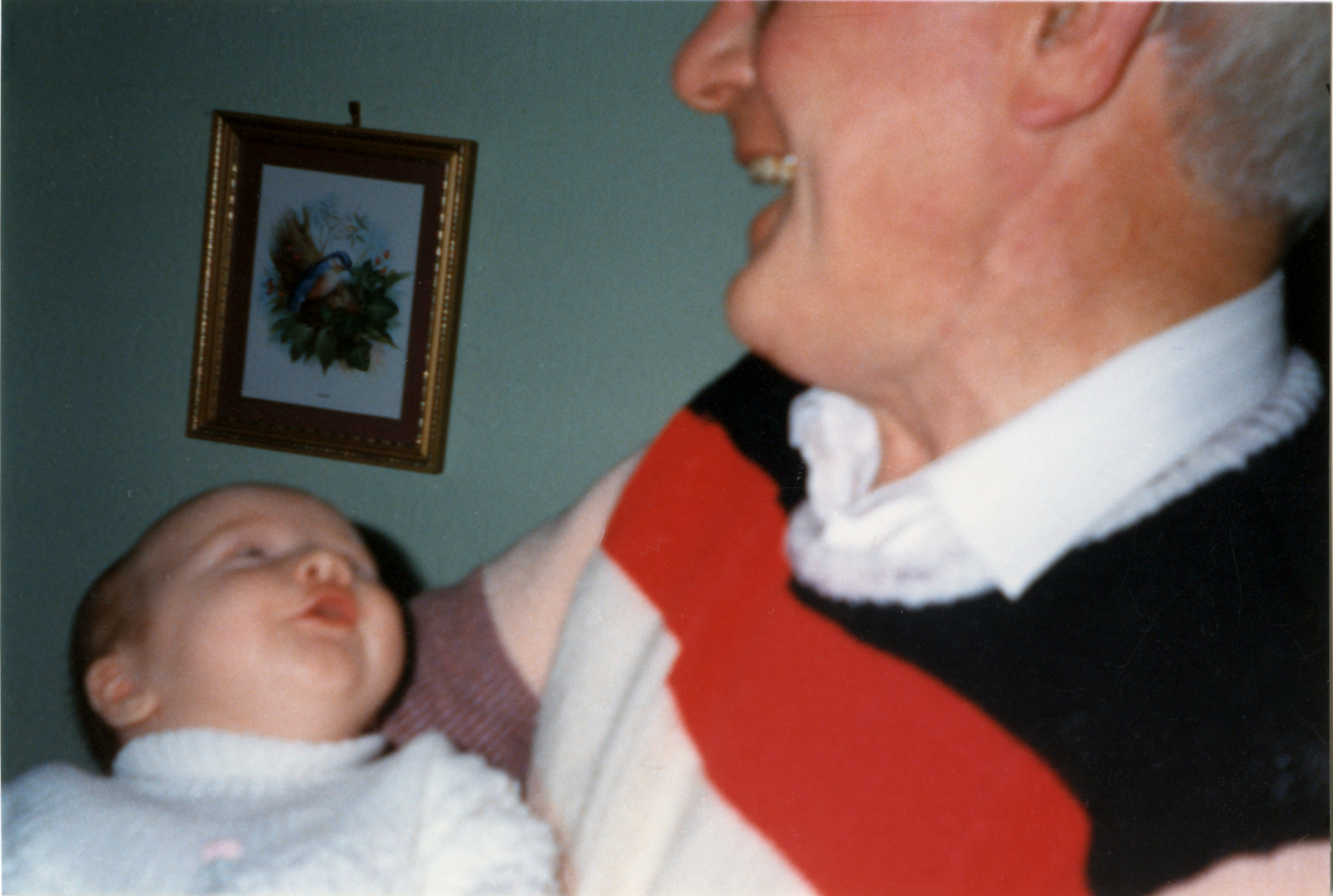 | Louise Elizabeth telling Grandad a story. Sept '87 |
