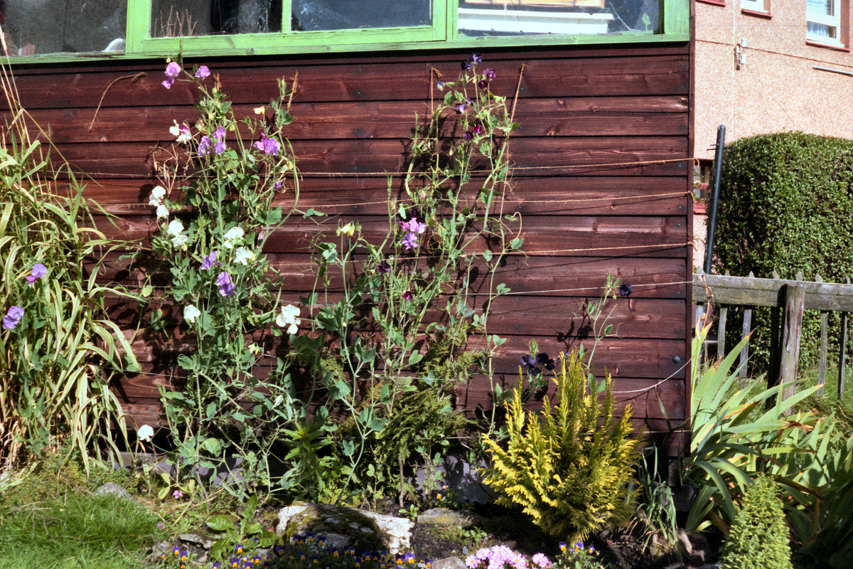 | 15. Sweet peas beside hut. | 16. Sweet peas on tripod (from Orchard). |