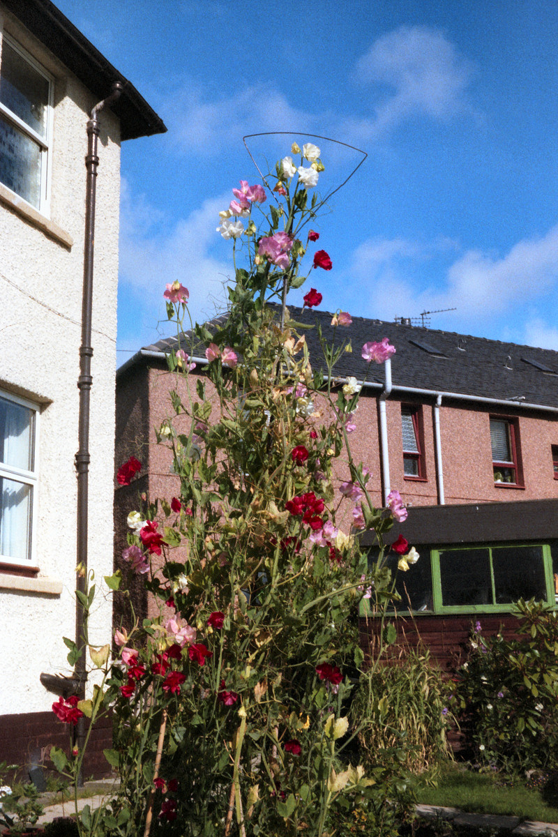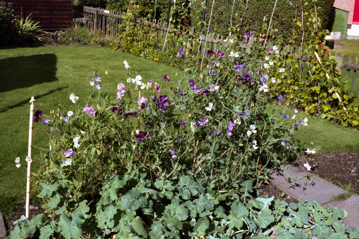 17. Sweet peas on tripod. | 18. Sweet peas at bottom of garden. |